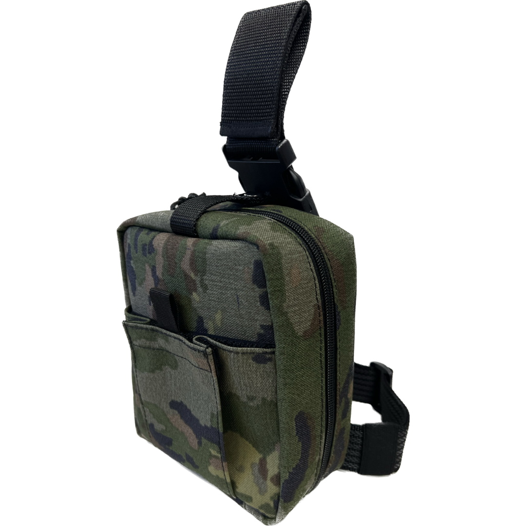 Botiquín diseñado para su uso en entornos militares y operativos, concebido para el transporte seguro y la organización del material de primeros auxilios. Permite su fijación a la pierna y/o al cinturón, facilitando el acceso rápido al contenido durante la intervención.
