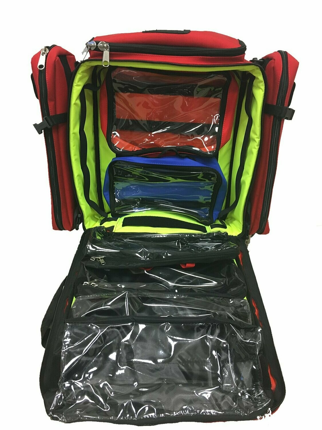 Mochila de emergencia de alta capacidad, diseñada para un transporte seguro, organizado y cómodo del material sanitario en intervenciones profesionales.