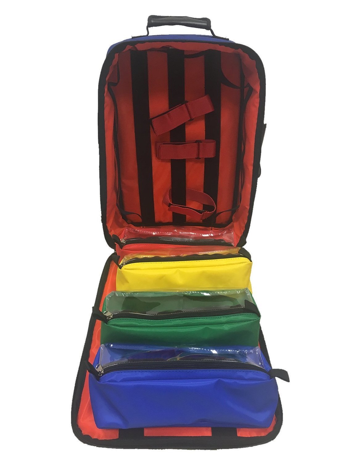 Mochila sanitaria diseñada para el transporte seguro y organizado de material de oxigenoterapia y soporte circulatorio, pensada para intervenciones rápidas y eficientes.